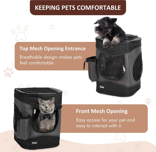 Two-Sided Entry Pet Backpack Travel Carrier for Cats & Small Dogs, Airline-Approved, Padded Back Support, Ideal for Hiking, Walking, Cycling & Outdoor Adventures